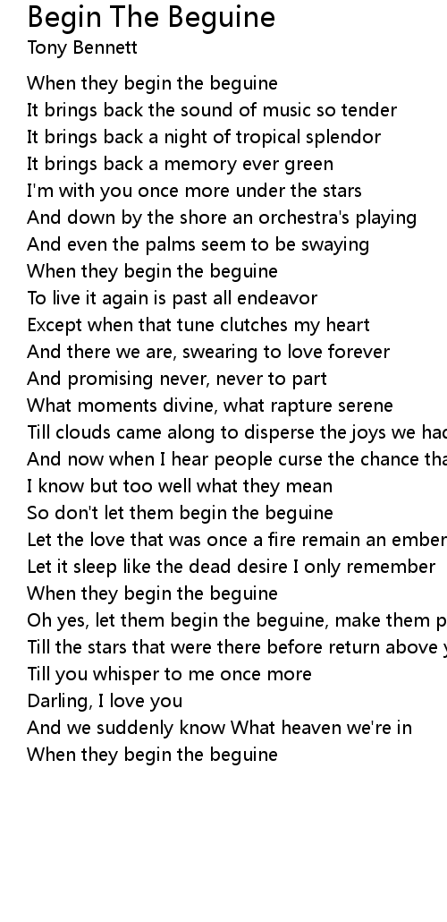 Oh yes, let them begin the beguine, make them play |