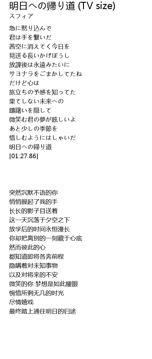 | [00:40.70] | 旅立ちの予感を知ってた |