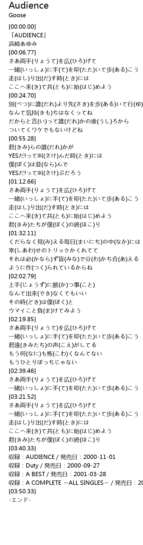 | [03:42.33] | shōu lù: AUDIENCE fā mài rì: 20001101 |