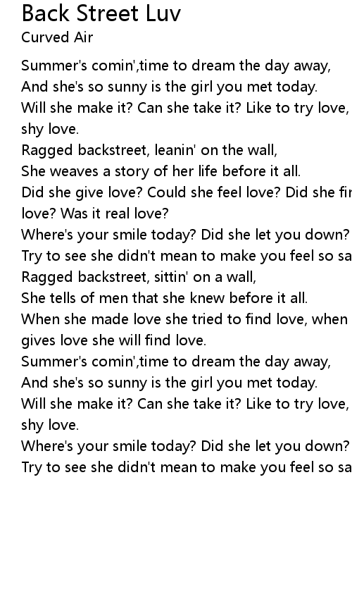 Ragged backstreet, leanin' on the wall, |