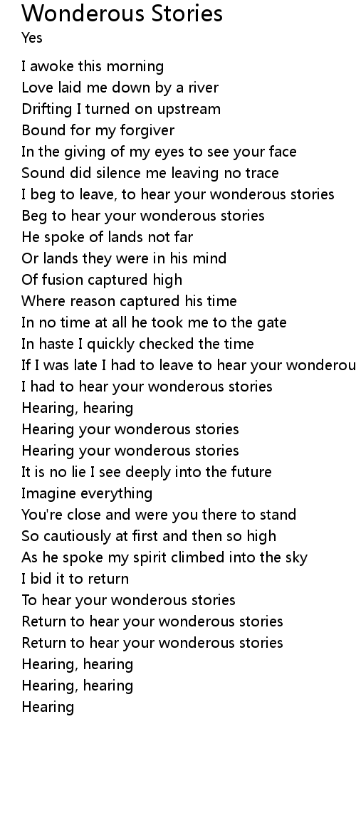 Return to hear your wonderous stories |
