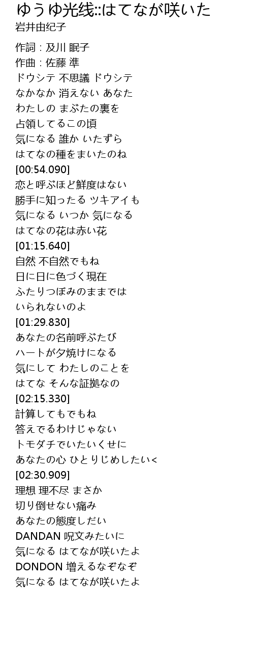 | [02:52.340] | 気になる はてなが咲いたよ |