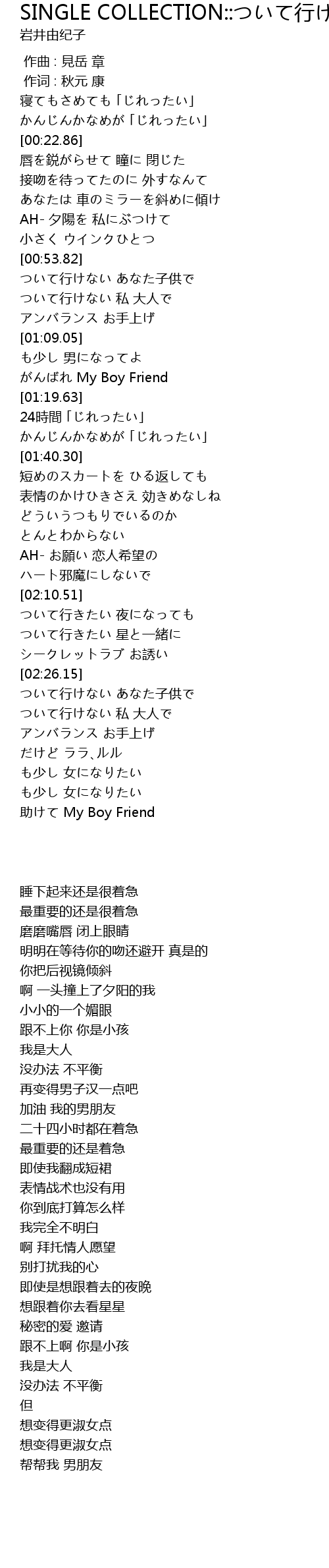 | Song | SINGLE COLLECTION::ついて行けない -がんばれボーイフレンド- |
