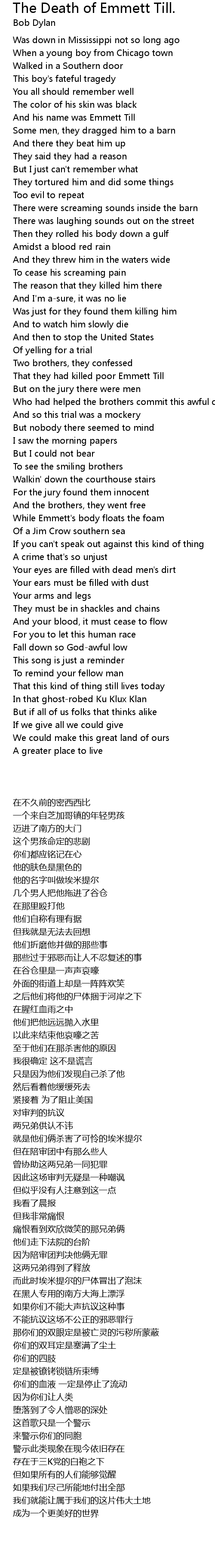 The Death of Emmett Till. Lyrics