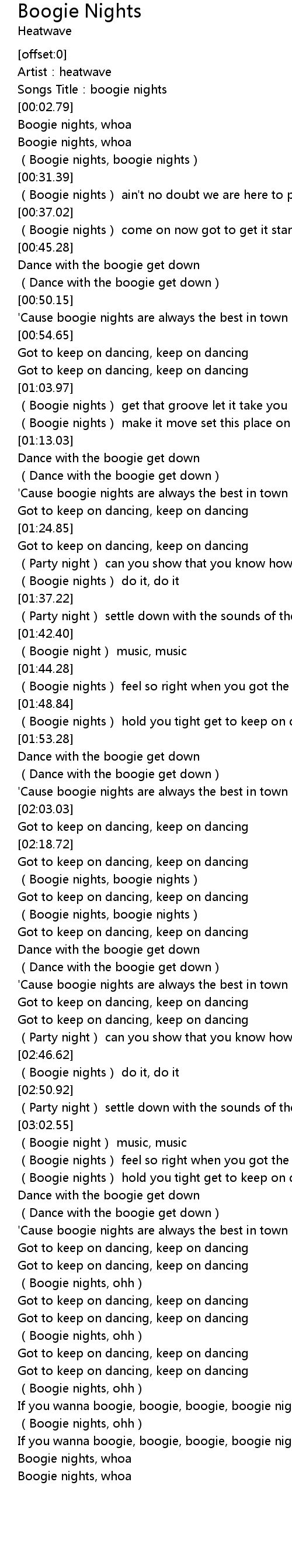 | [02:28.80] | (Boogie nights, boogie nights) |
