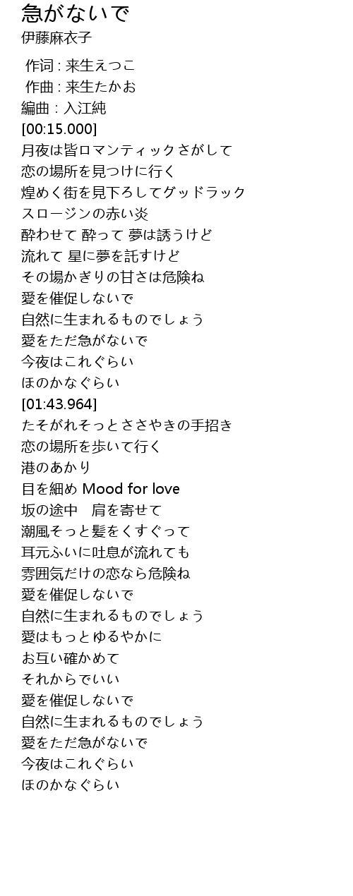 | [02:45.314] | 耳元ふいに吐息が流れても |