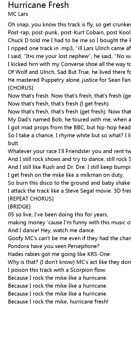 | Because I rock the mike, hurricane fresh! |