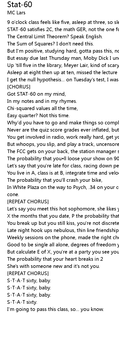 | Got STAT60 on my mind, | |