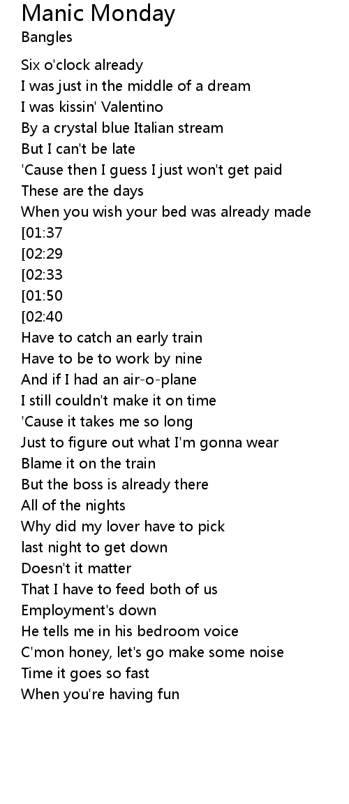 [02:52][02:40][01:53][01:03] It's just another manic Monday