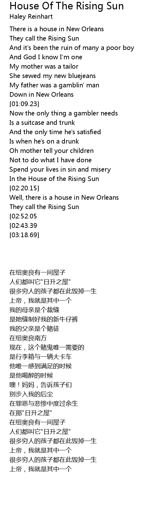 Well, there is a house in New Orleans |