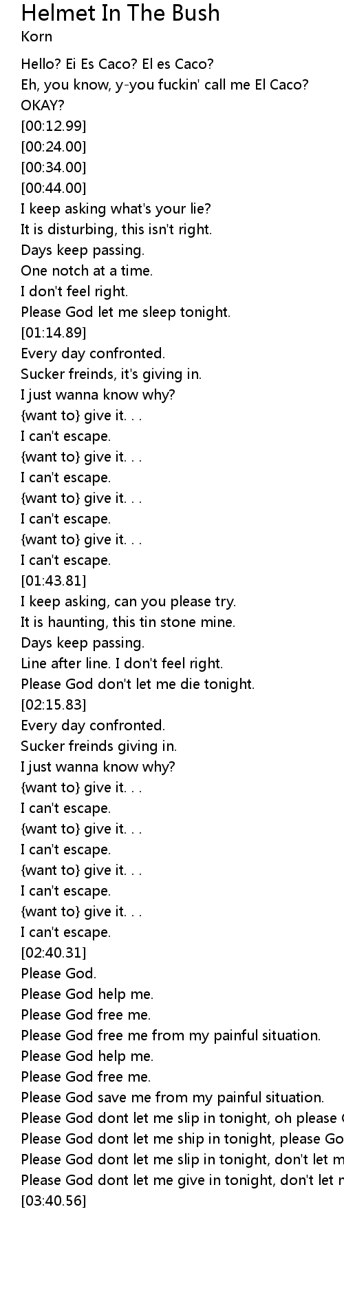 | [03:13.42] | Please God help me. |