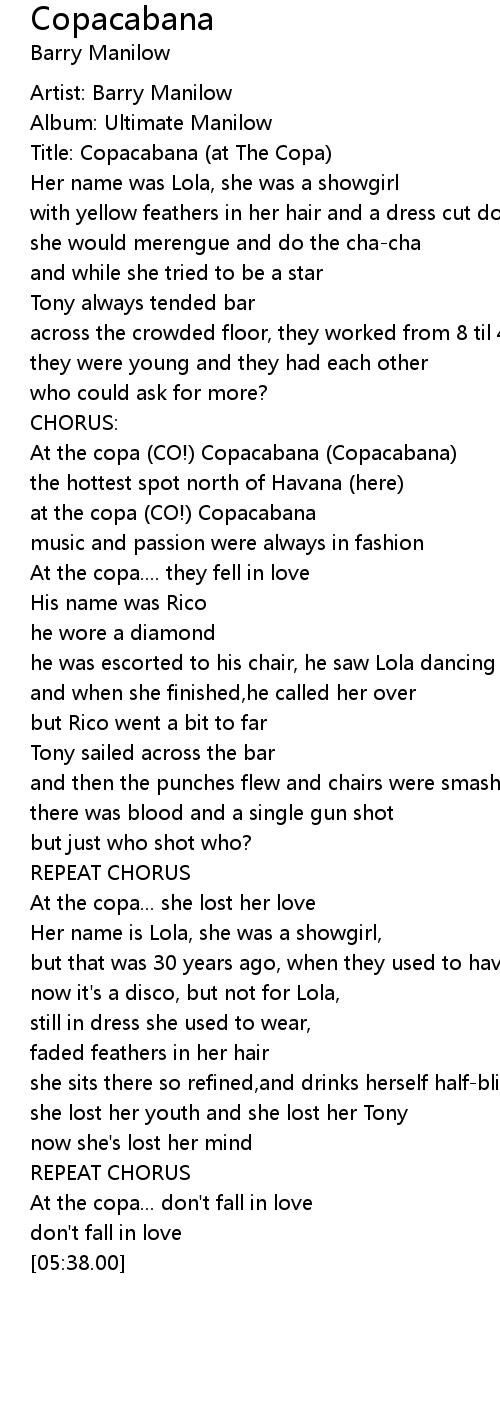 Title: Copacabana (at The Copa) |