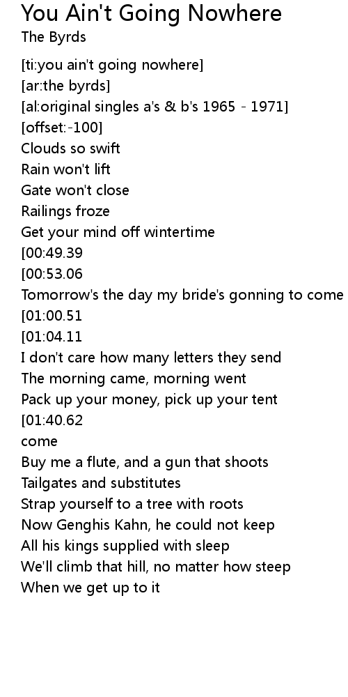 [00:20.31][00:49.39][01:33.41] You ain't goin nowhere