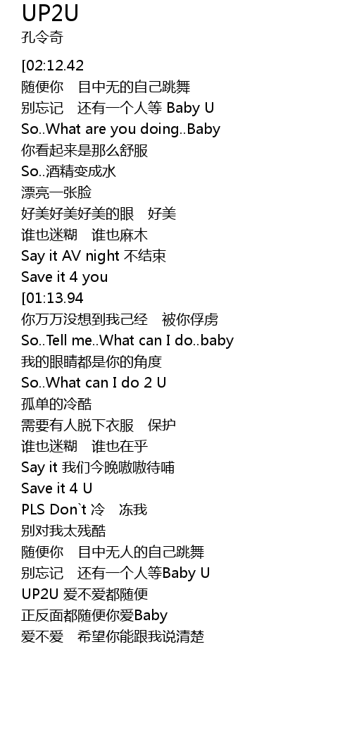| [02:22.42] | UP2U 爱不爱都随便 |