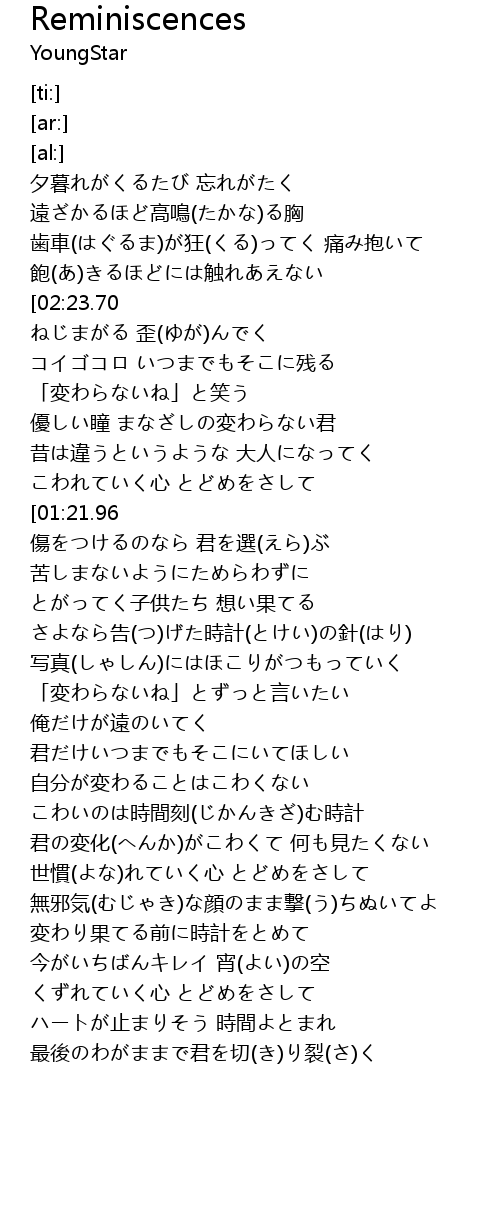 | [02:19.17] | 「変わらないね」とずっと言いたい |