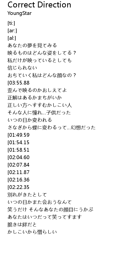 | [03:33.45][02:04.60] | うしろなんか見ない |