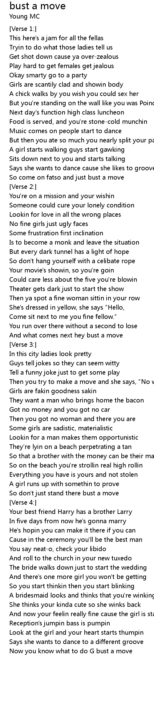 And what comes next hey bust a move |