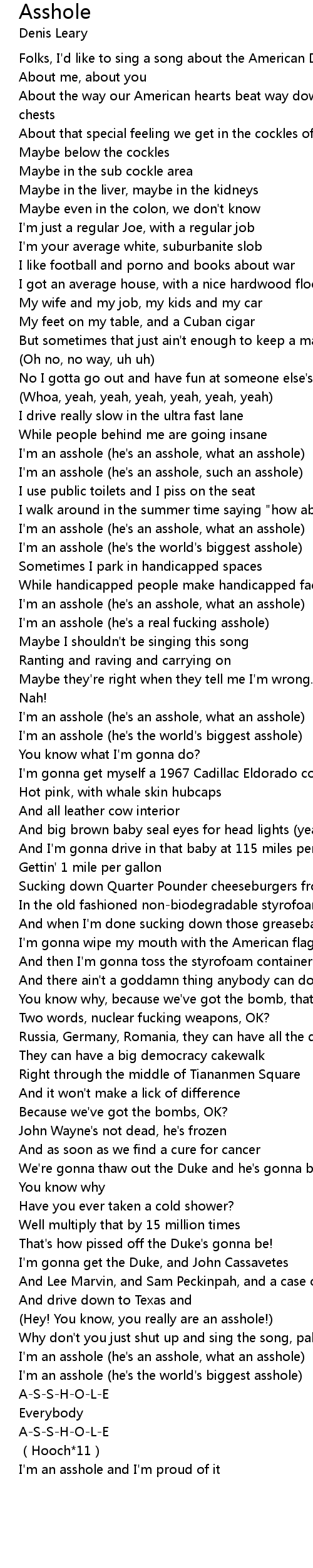 | [01:31.55] | I' m an asshole he' s an asshole, what an asshole |
