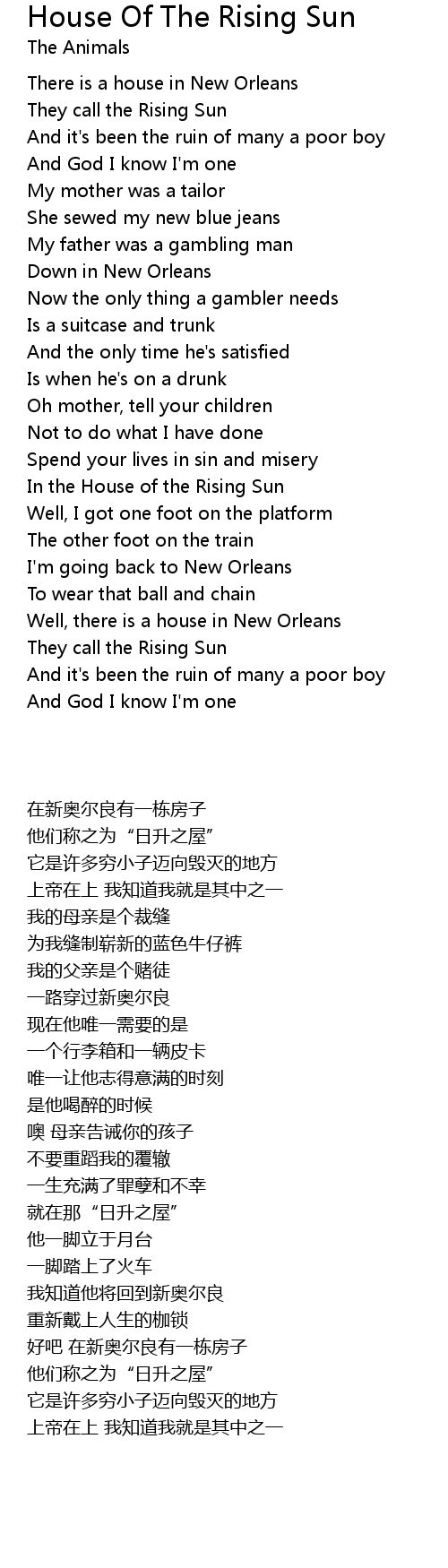 Well, there is a house in New Orleans |