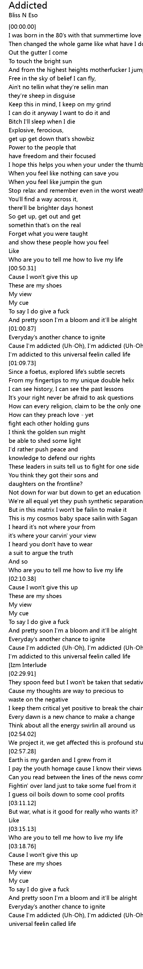 [03:32.62] Cause I'm addicted (Uh-Oh), I'm addicted (Uh-Oh) I'm addicted to this universal feelin called life