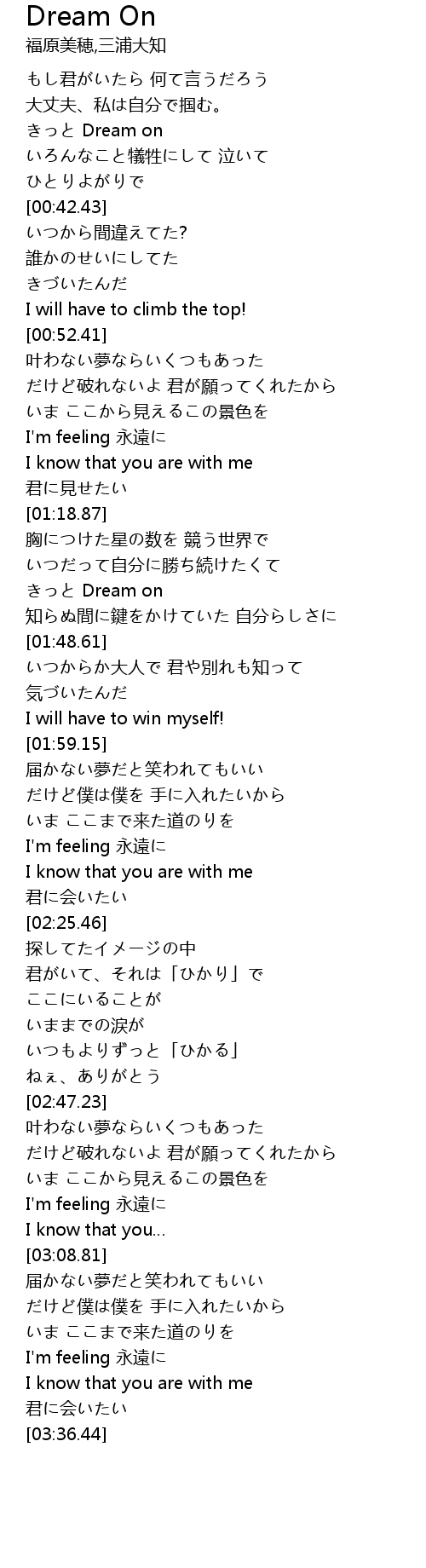 | [00:31.75] | きっと Dream on |