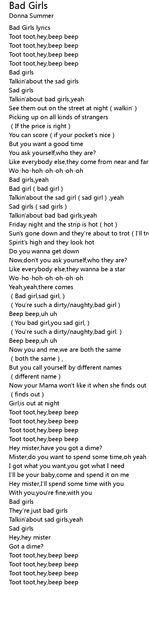 | [00:01.94] | Bad Girls lyrics |