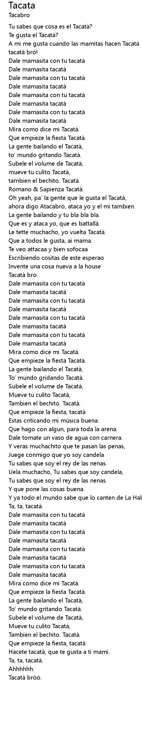 | Oh yeah, pa' la gente que le gusta el Tacatà, | |