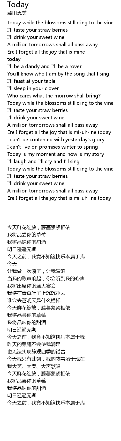 | [01:26.200] | Today while the blossoms still cling to the vine |