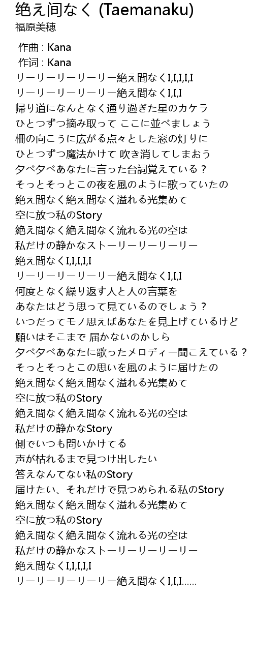 | [00:00.000] | リーリーリーリーリー絶え間なくI,I,I,I,I |