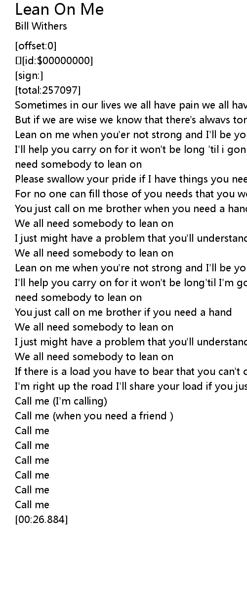 | [01:12.661] | need somebody to lean on |