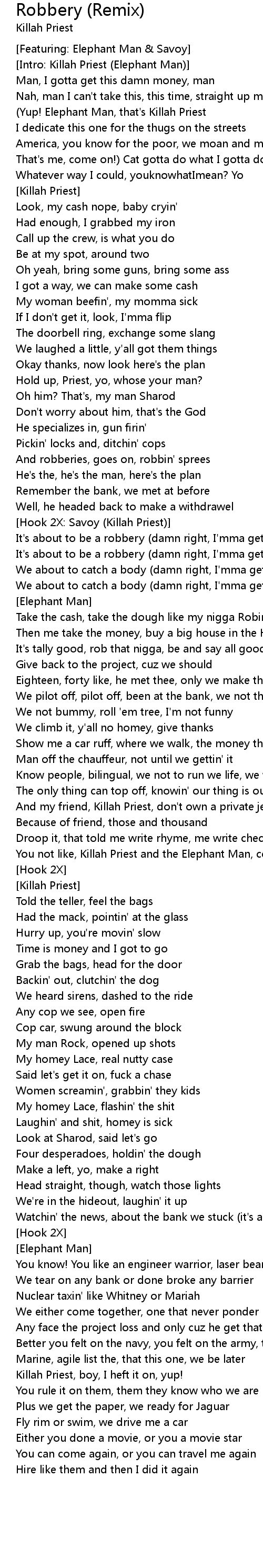 [Intro: Killah Priest (Elephant Man)] |