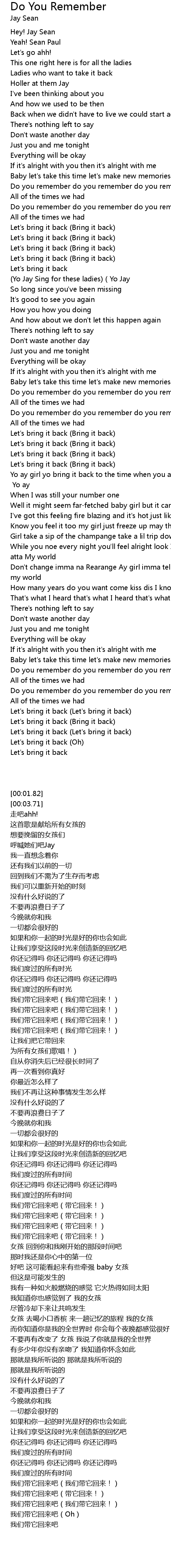 | [03:02.18] | Do you remember do you remember do you remember |