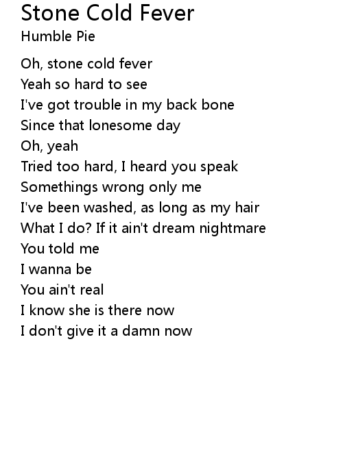 | Oh, stone cold fever | |