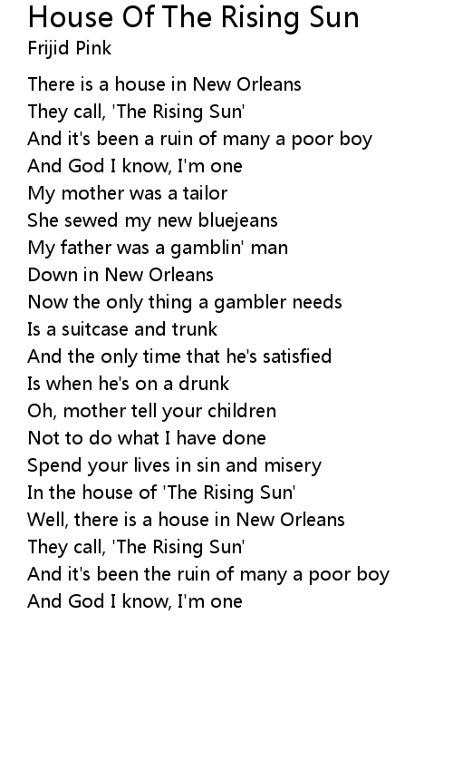 Well, there is a house in New Orleans |