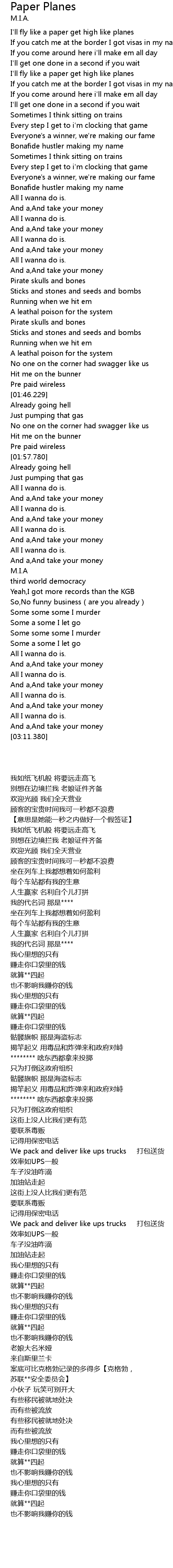 | Song | Paper Planes |