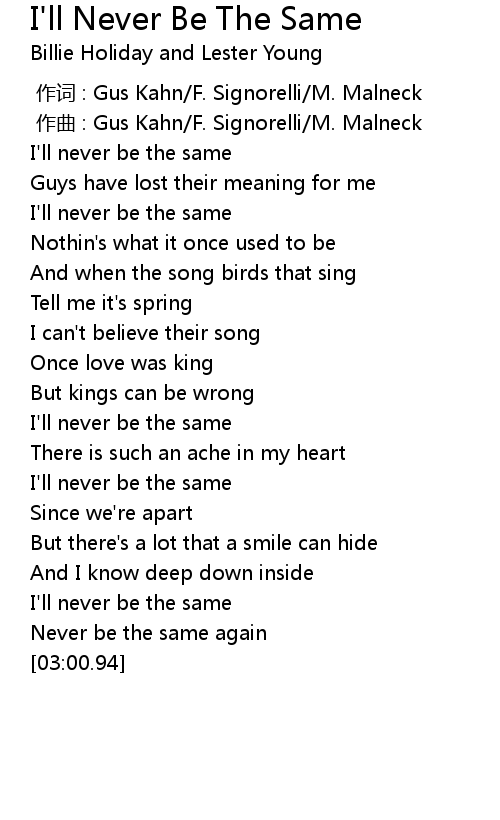 | [02:53.87] | Never be the same again |