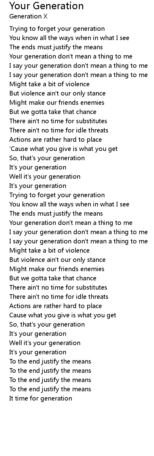 I say your generation don't mean a thing to me