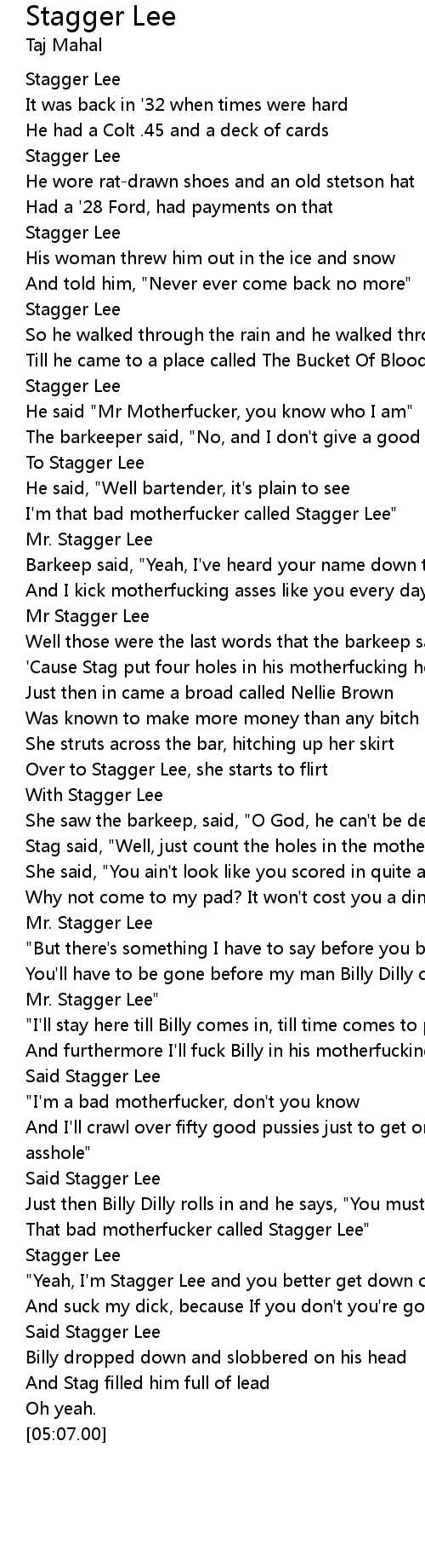 [03:34.64] That bad motherfucker called Stagger Lee"