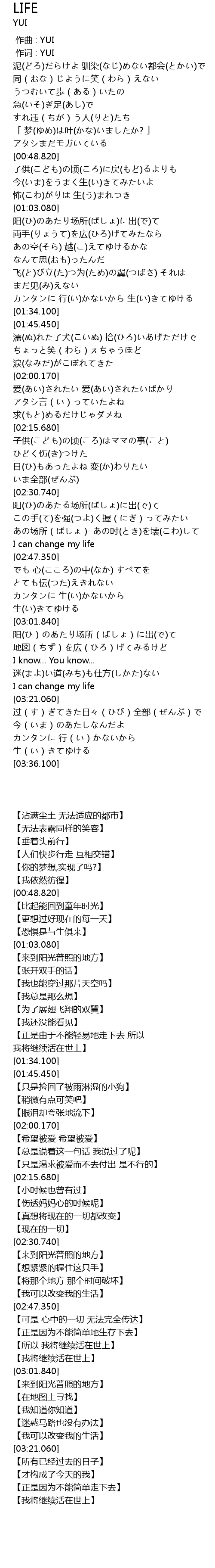 | [03:26.100] | 今(いま)のあたしなんだよ |