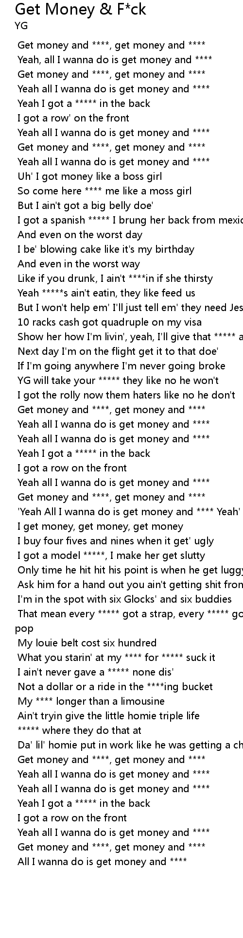 'Yeah All I wanna do is get money and **** Yeah' |