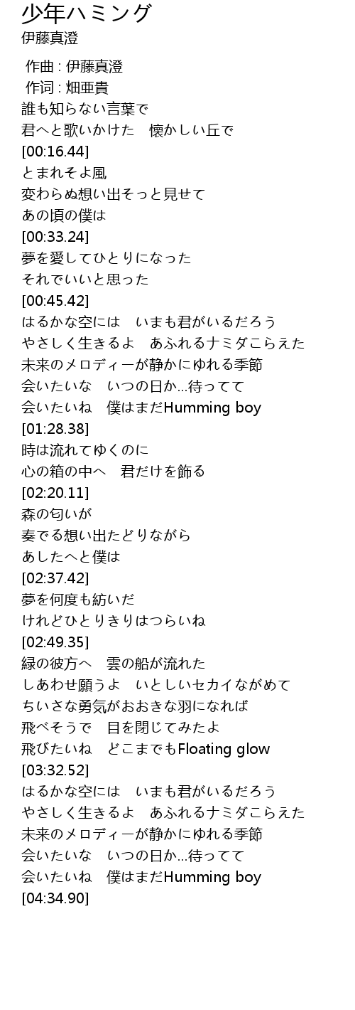 | [04:27.77] | 会いたいね 僕はまだHumming boy |