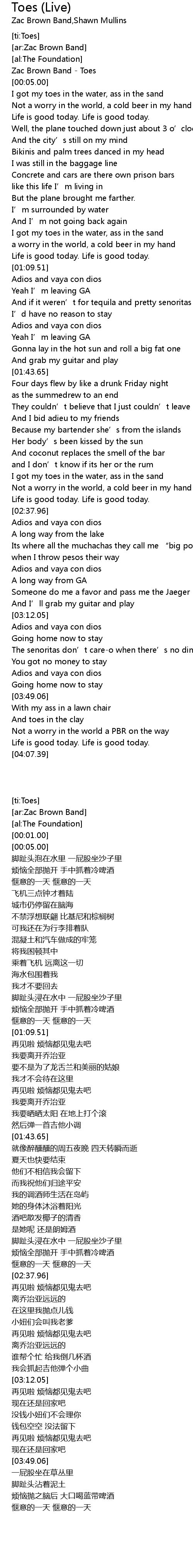 | [00:57.39] | I got my toes in the water, ass in the sand |
