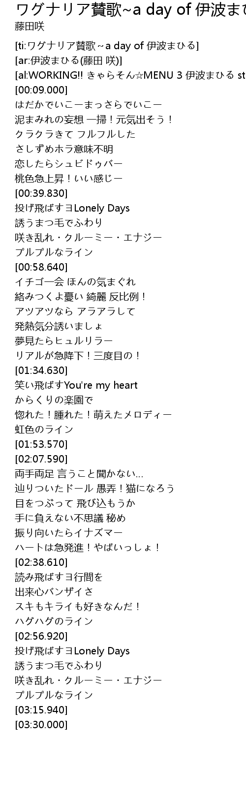 | [ti:ワグナリア賛歌~a day of 伊波まひる] | |