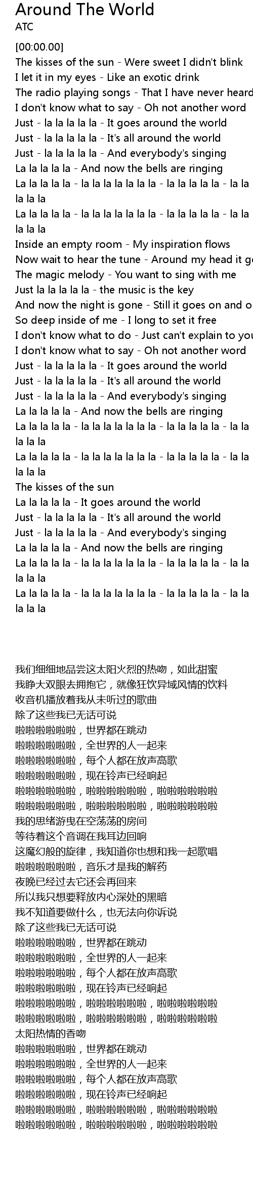 La la la la la - It goes around the world |