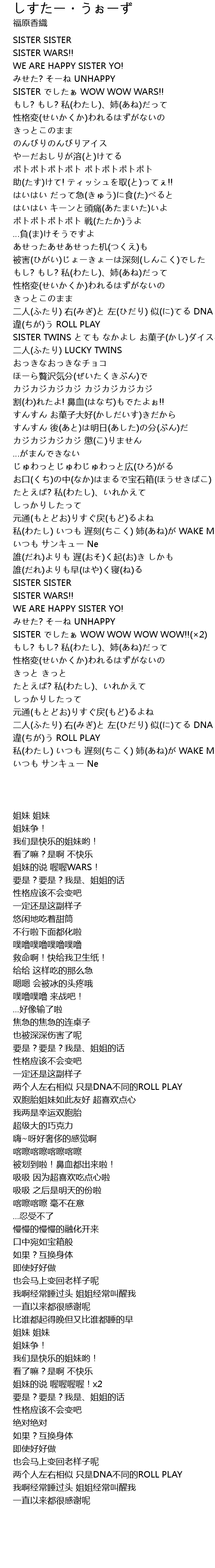 | [00:22.76] | SISTER WOW WOW WARS!! |