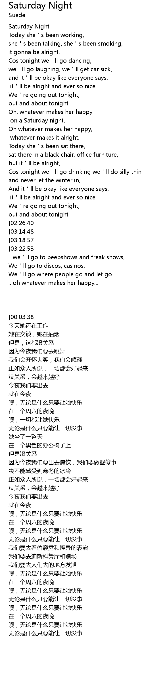 | [00:03.38] | Saturday Night |