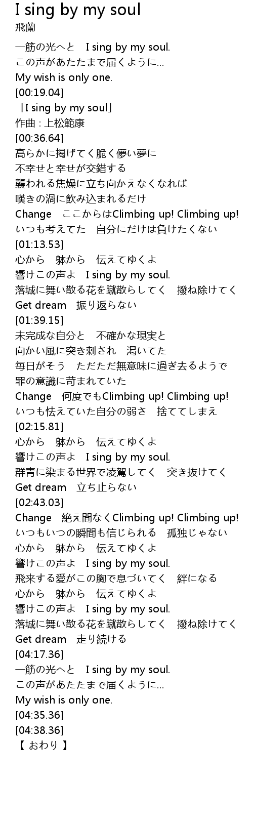 | [00:59.59] | Change ここからはClimbing up! Climbing up! |