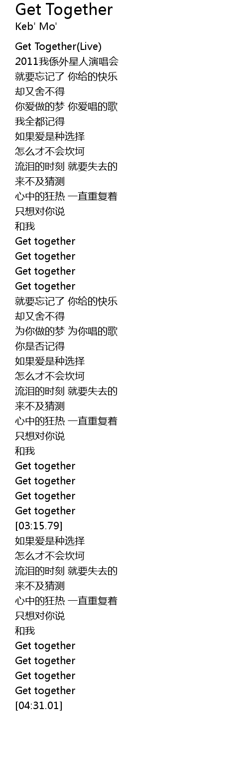 | [00:01.49] | Get Together Live |