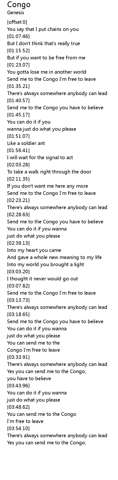 Send me to the Congo I'm free to leave |