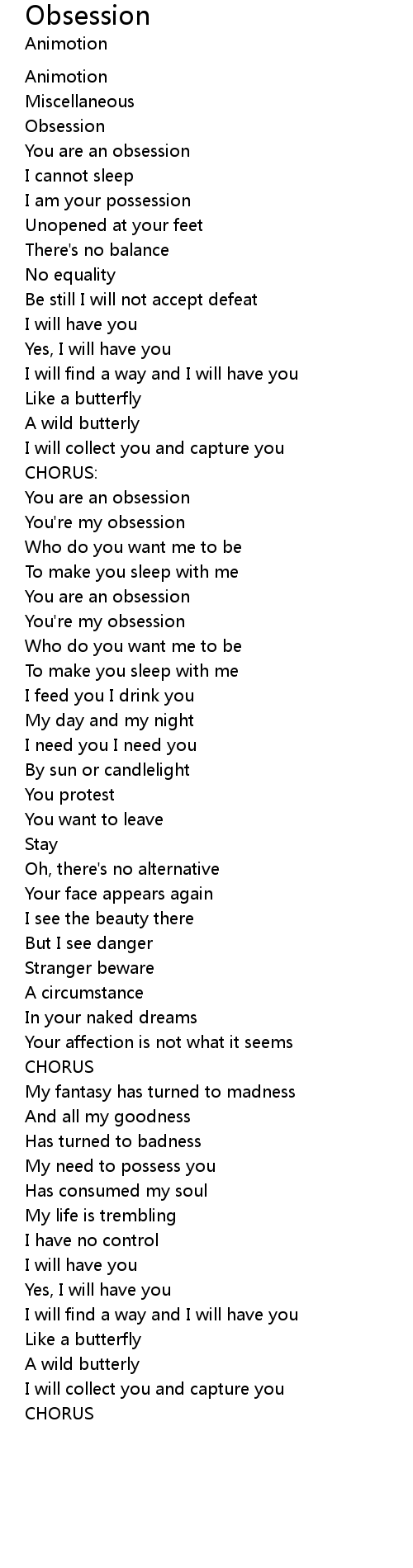 You are an obsession |
